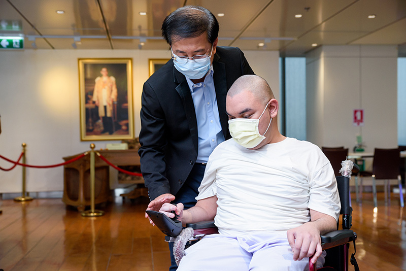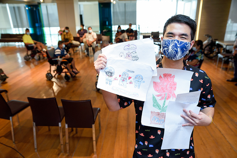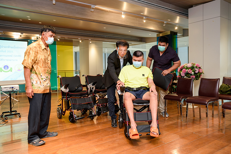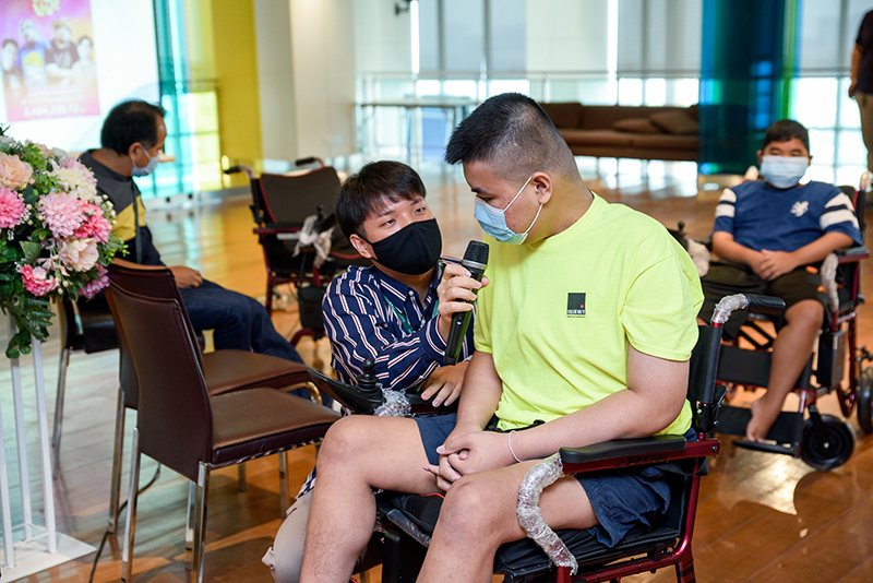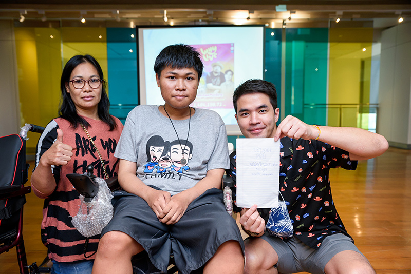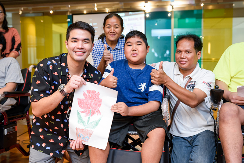 Pictures Collection of the activity of giving electric wheelchairs to children and donating funds to Foundation to Eradicate Neuromuscular Diseases from the LIVE event #WhyLiveValenther (Why Live Valent-you), with Mr. Wan Thanakrit (the artist) and the team, and all the donated to the foundation.
